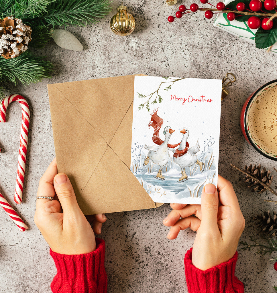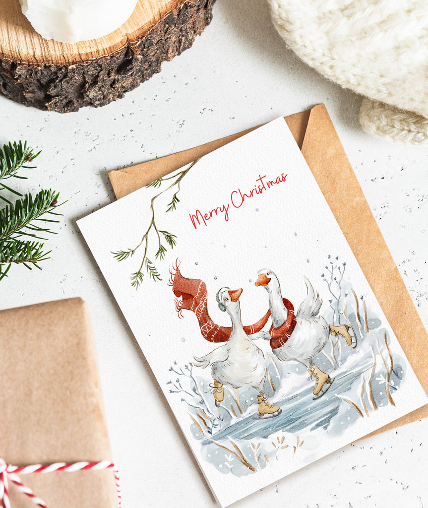 Merry Christmas Card Happy Xmas Season's Greetings Ducks